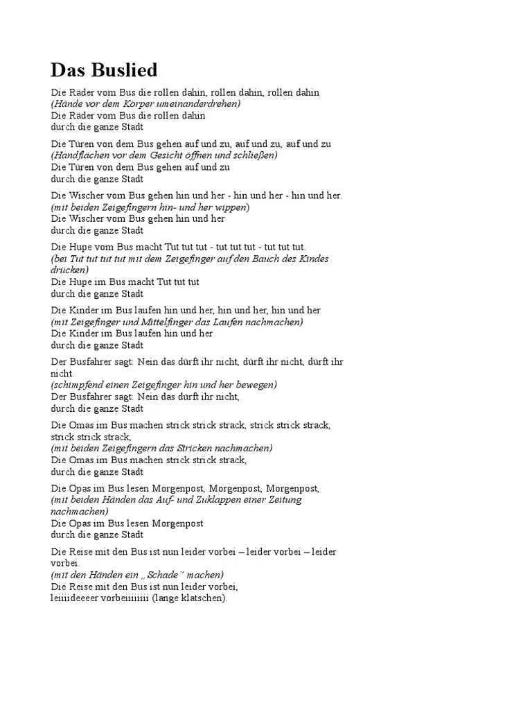 16.06.2021 · lyrics die türen vom bus gehen auf und zu die wischer vom bus machen wisch wisch wisch die hupe vom bus macht tut tut tut der fahrer im bus sagt nach hinten durch die leute im bus machen bla bla bla der motor vom bus macht brumm brumm brumm die babys im bus machen wäh wäh wäh die mamas in dem bus machen pst pst pst die kinder in dem bus singen la la la die papas im bus machen. Mehr lieder und noten findest du unter: Begleiten sie uns durch die neue «chindermusigwält»! 18.08.2021 · die räder vom bus text mit akkorden / die räder vom bus | kinderlieder | schlaflieder für babys. Die räder an dem bus drehn sich rundherum durch die ganze stadt.